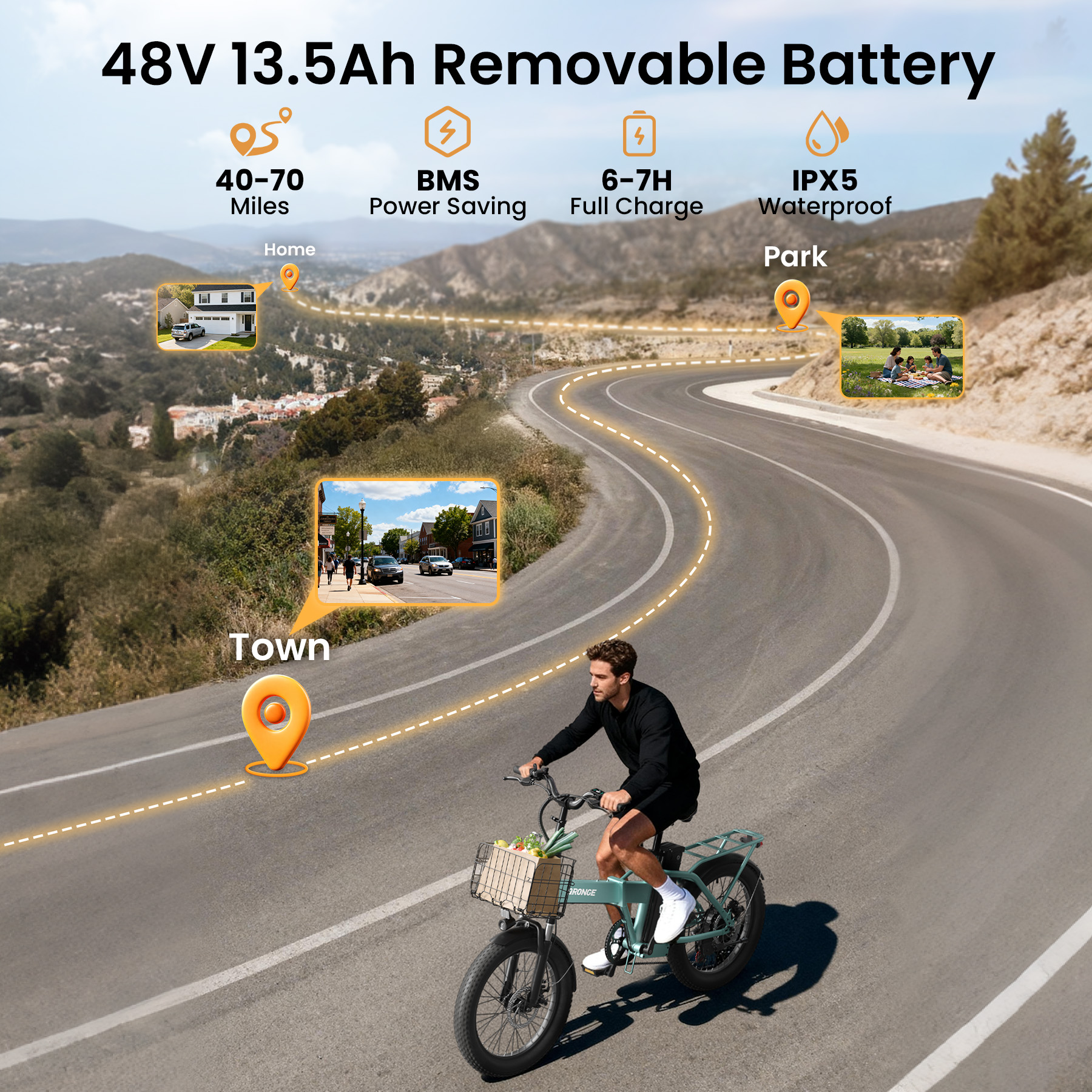 - Аккумулятор 648 Вт·ч — запас хода до 70 миль.